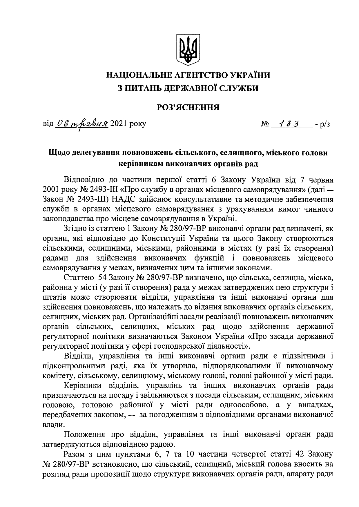 Щодо делегування повноважень сільського, селищного, міського голови керівникам виконавчих органів влади